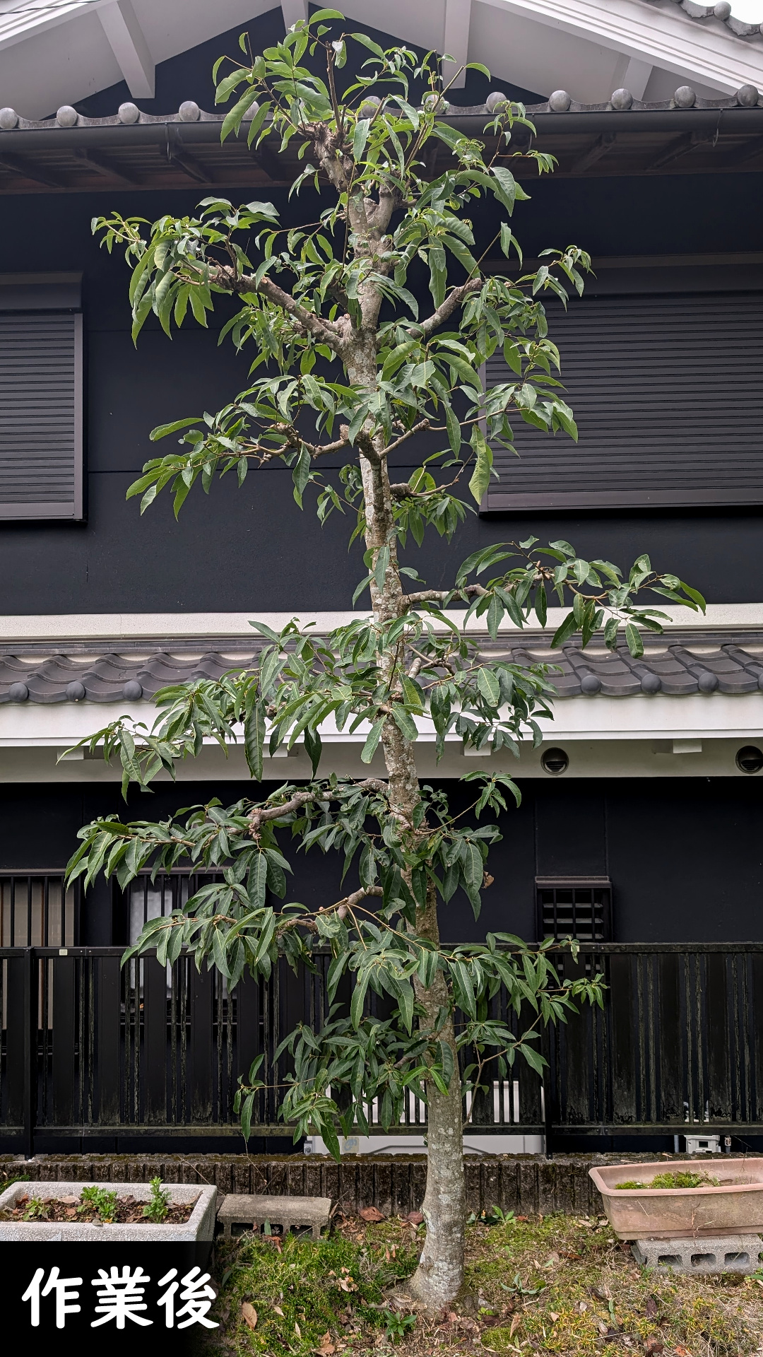 写真は毎年手入れしている庭の樹ですが、一般的な仕立てられたシラカシは多くの徒長枝を発生させて樹形を乱しますので樹形維持には最低年一度の剪定が必須です。