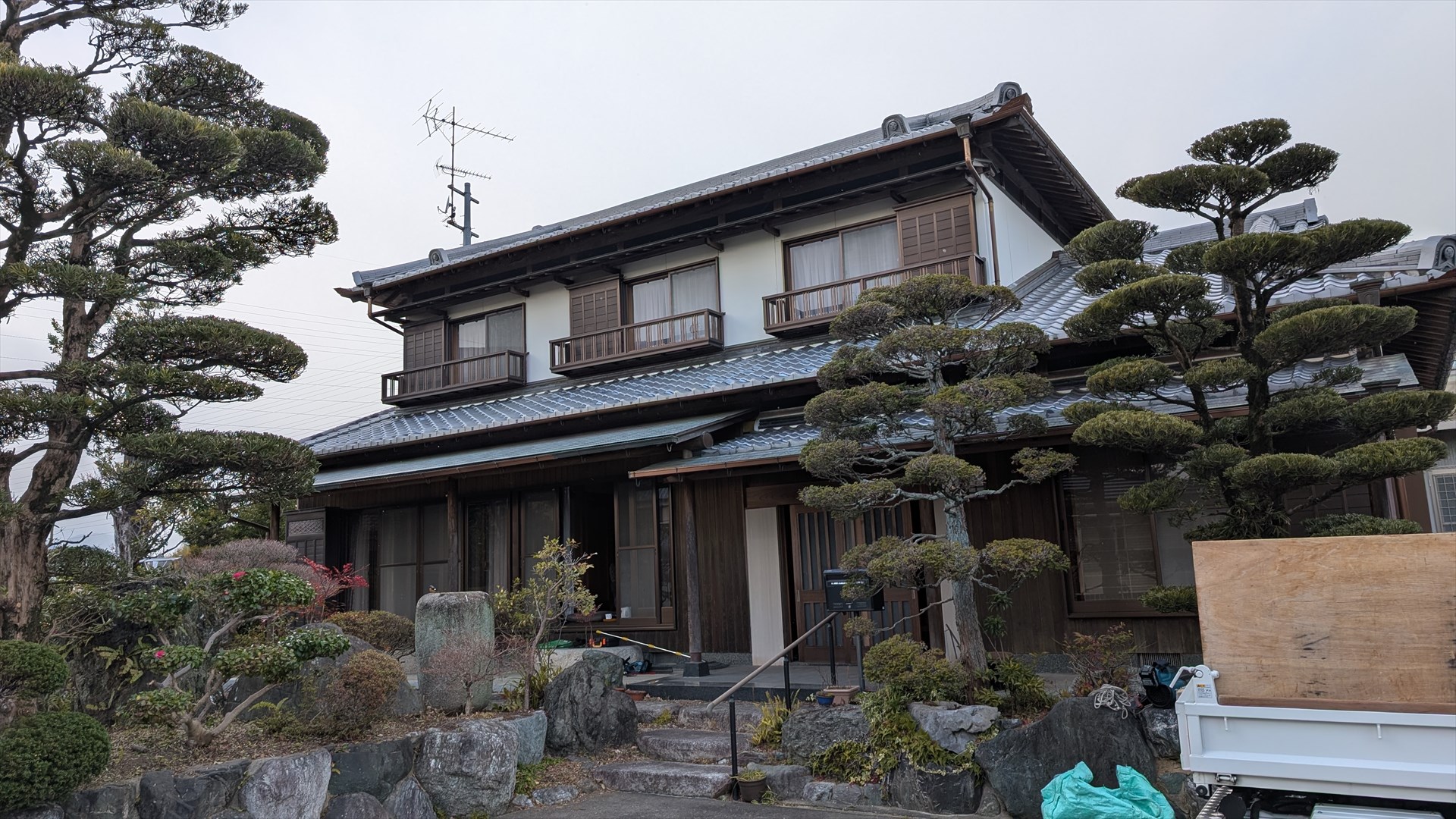 閲覧有難う御座います。名張市の植木屋「石波造園」です。本日は名張市内で個人邸の剪定作業でした。下見で受けたご要望は、裏のサンルーム横に中木サイズながら立派な松がありますが、枝がガラスに接近している等の